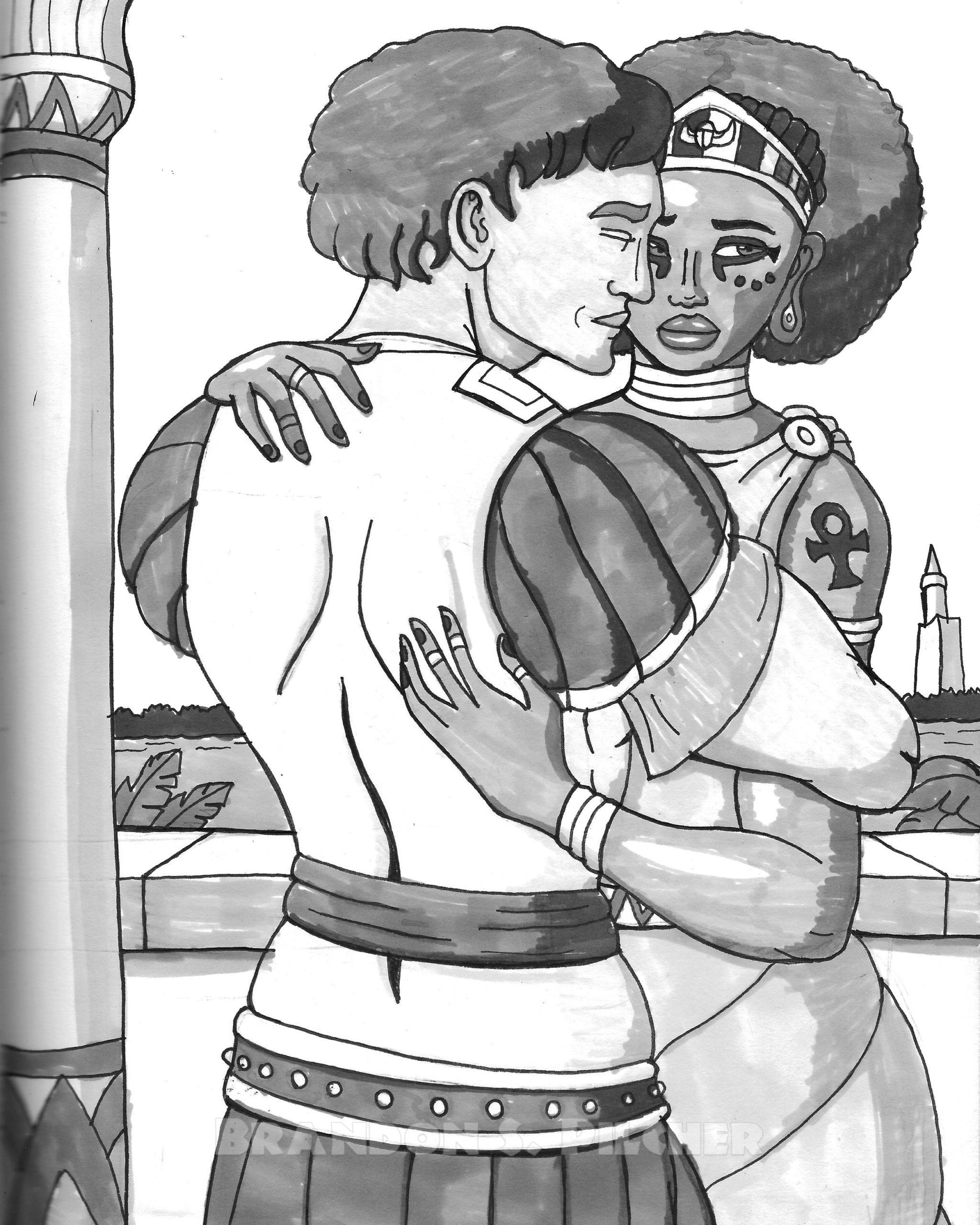 This is a redrawing of a piece I did using pen ink and grayscale markers back in 2014, in which Cleopatra came out looking rather regretful or anxious. Dunno why she’d be feeling that way (guilt or fear of Antony’s enemies in Rome, perhaps?), but I liked the emotion in that old piece and wanted to “update” it.
